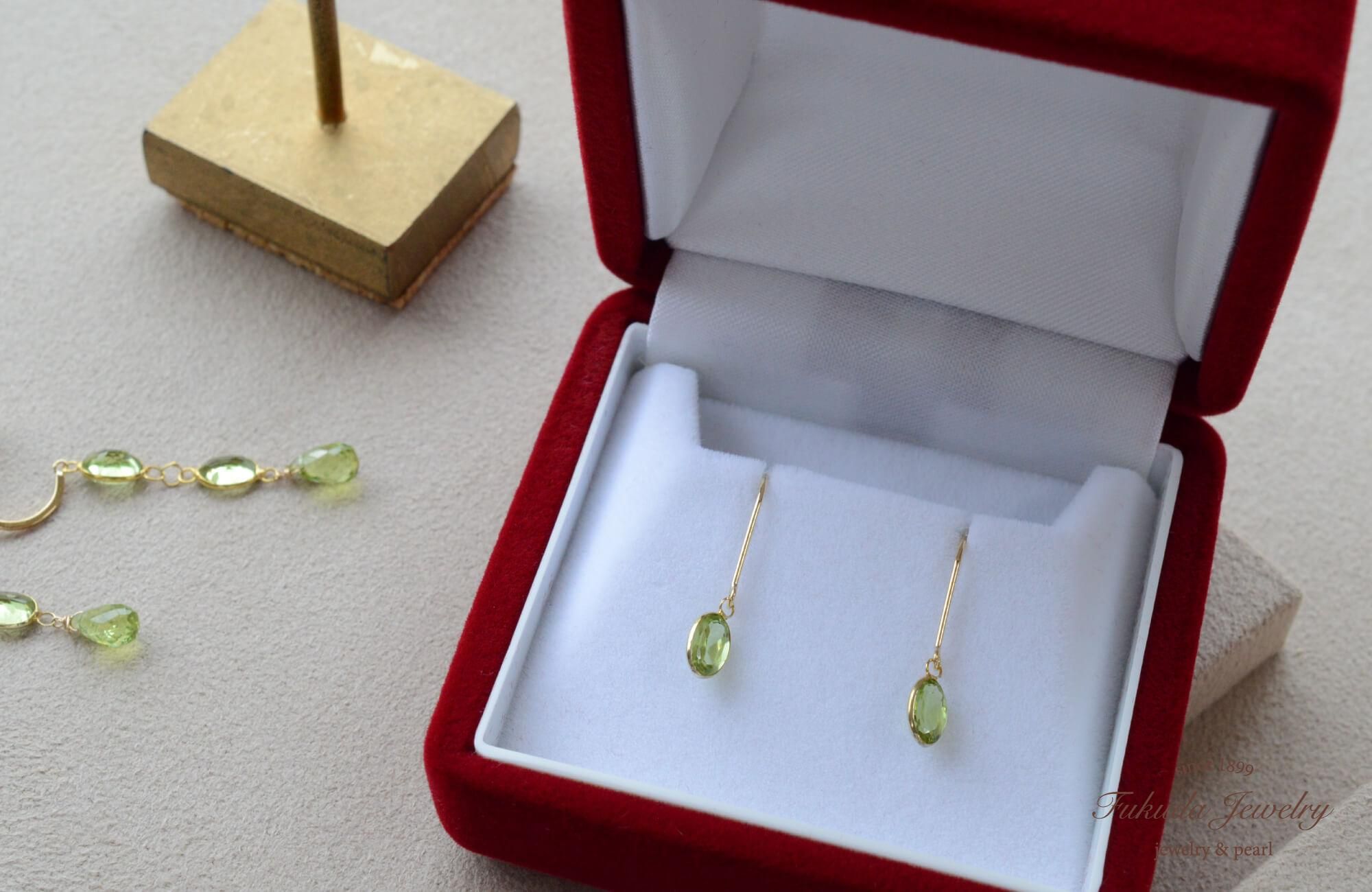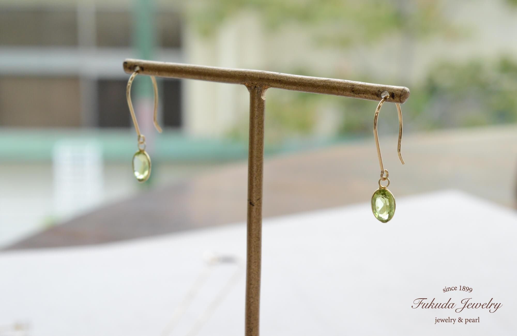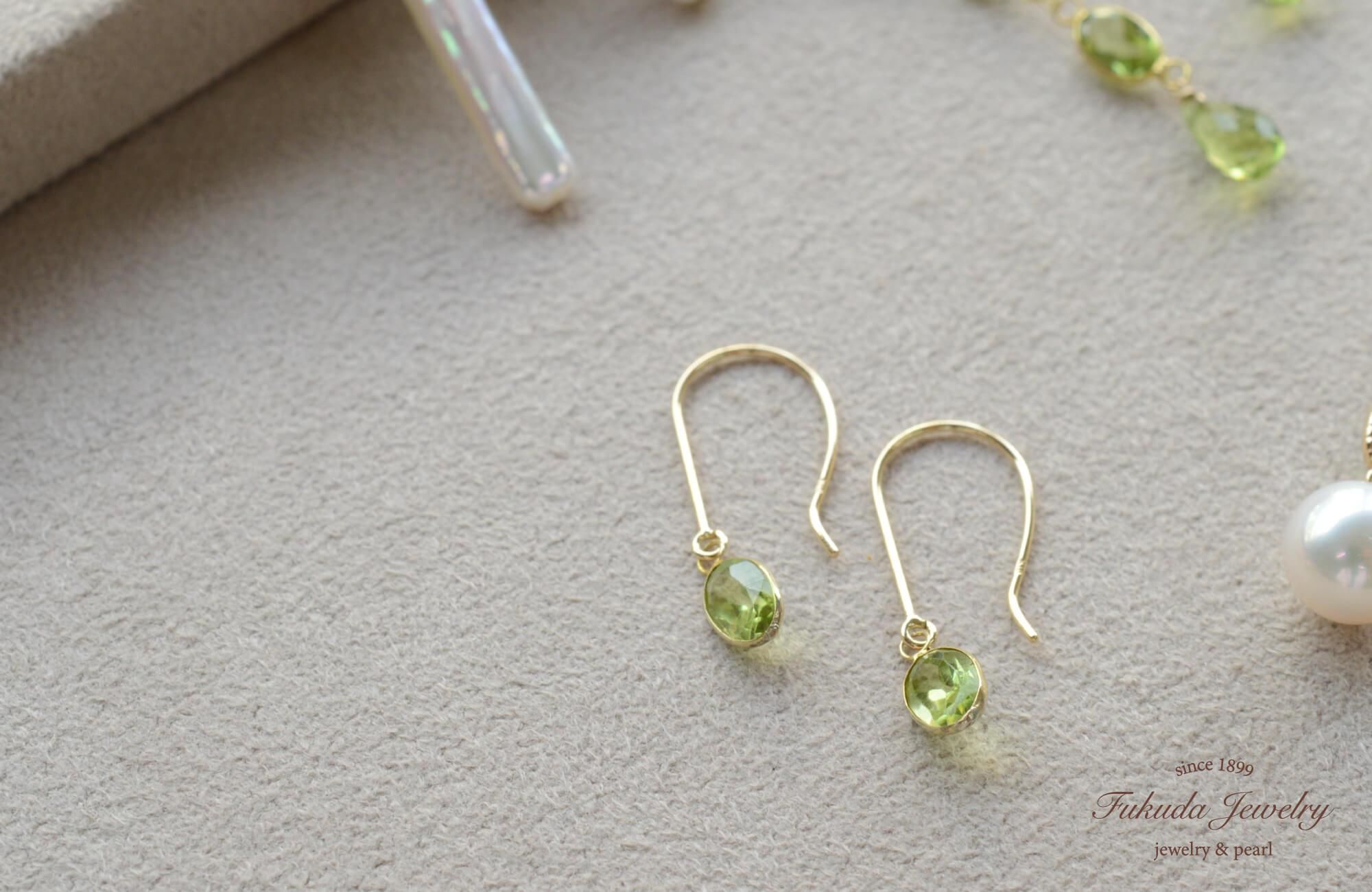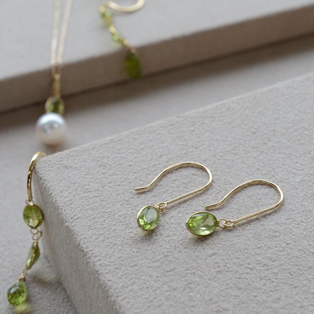 天然ペリドットの爽やかなグリーンが顔まわりを明るく演出