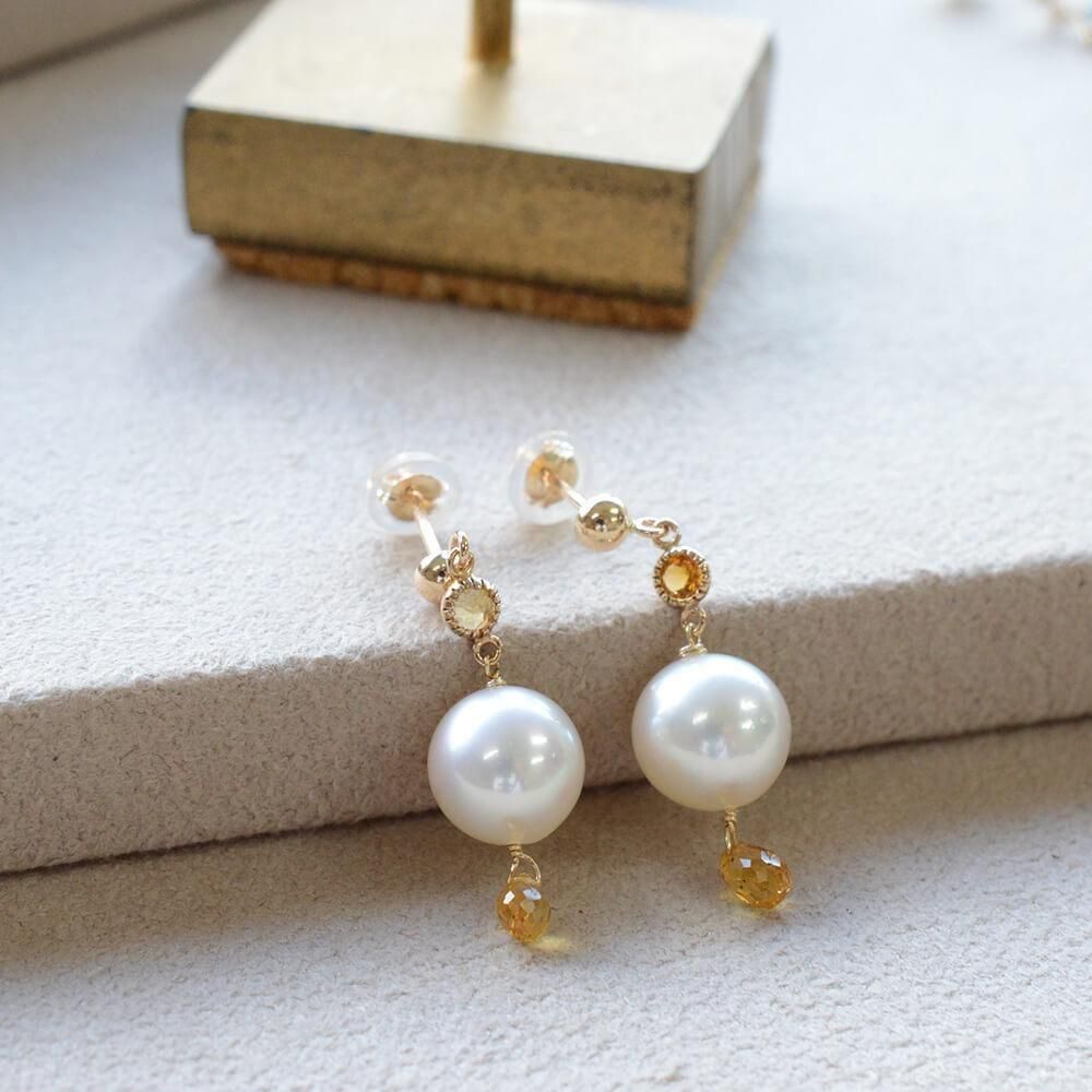 素材:K10イエローゴールド、アコヤ真珠7.5mmUP、各種カラーストーン(ブルートパーズ、シトリン、レモンクオーツ、アメシスト、カラーサファイア)